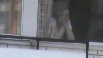 Рыжеволосая стройная порево на русском мастурбирует на балконе
